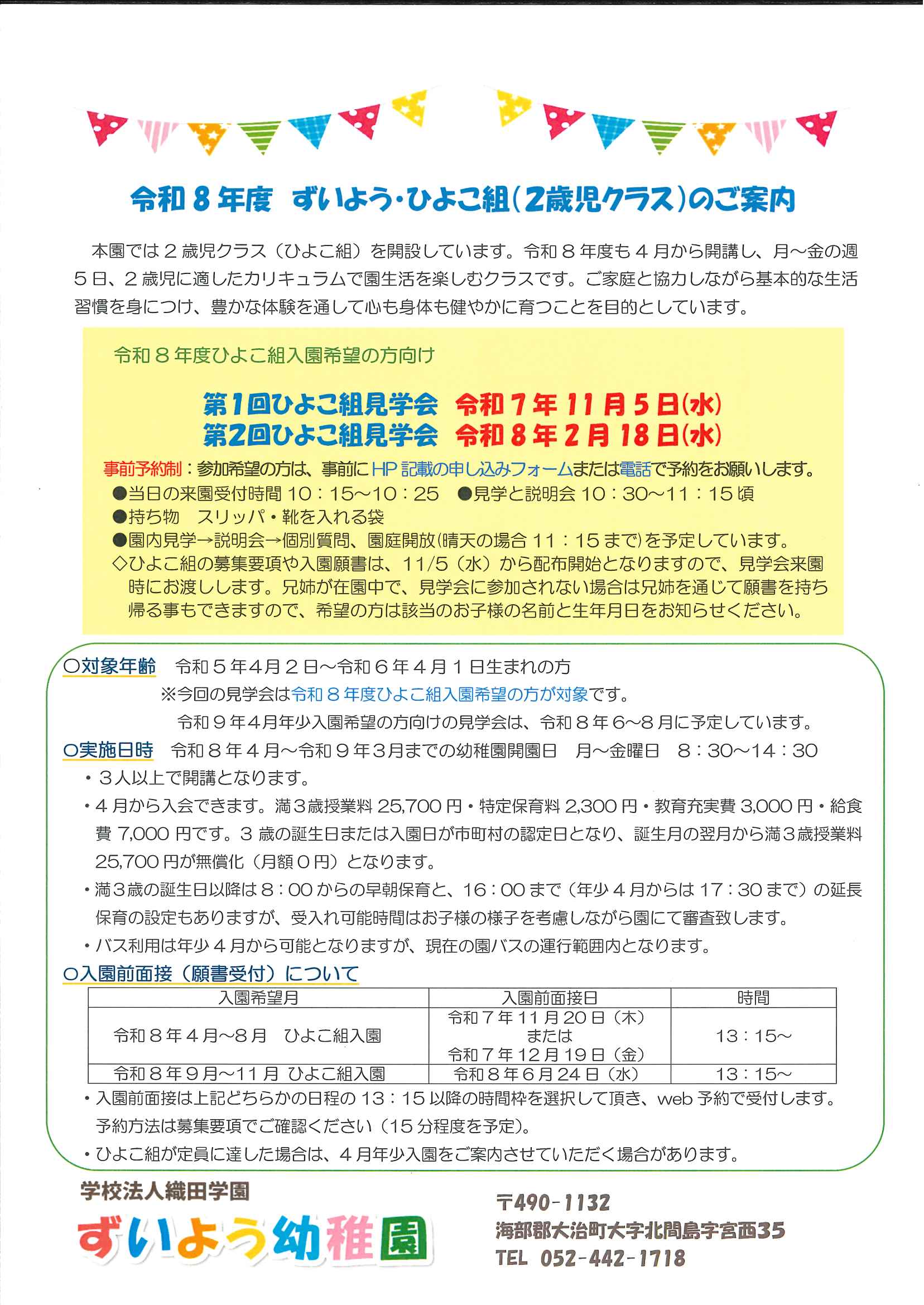 学校法人織田学園ずいよう幼稚園お問い合わせ